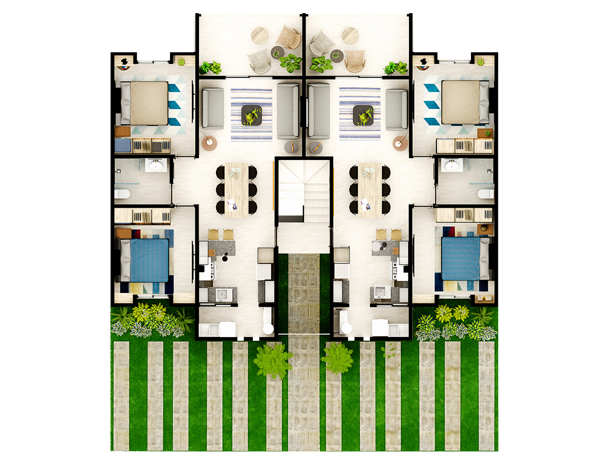 Un desarrollo de 3 edificios de 3 niveles, con departamentos de 68 a 78 m² y 2 recámaras, diseñado para familias pequeñas e inversionistas que buscan accesibilidad, confort y crecimiento patrimonial.